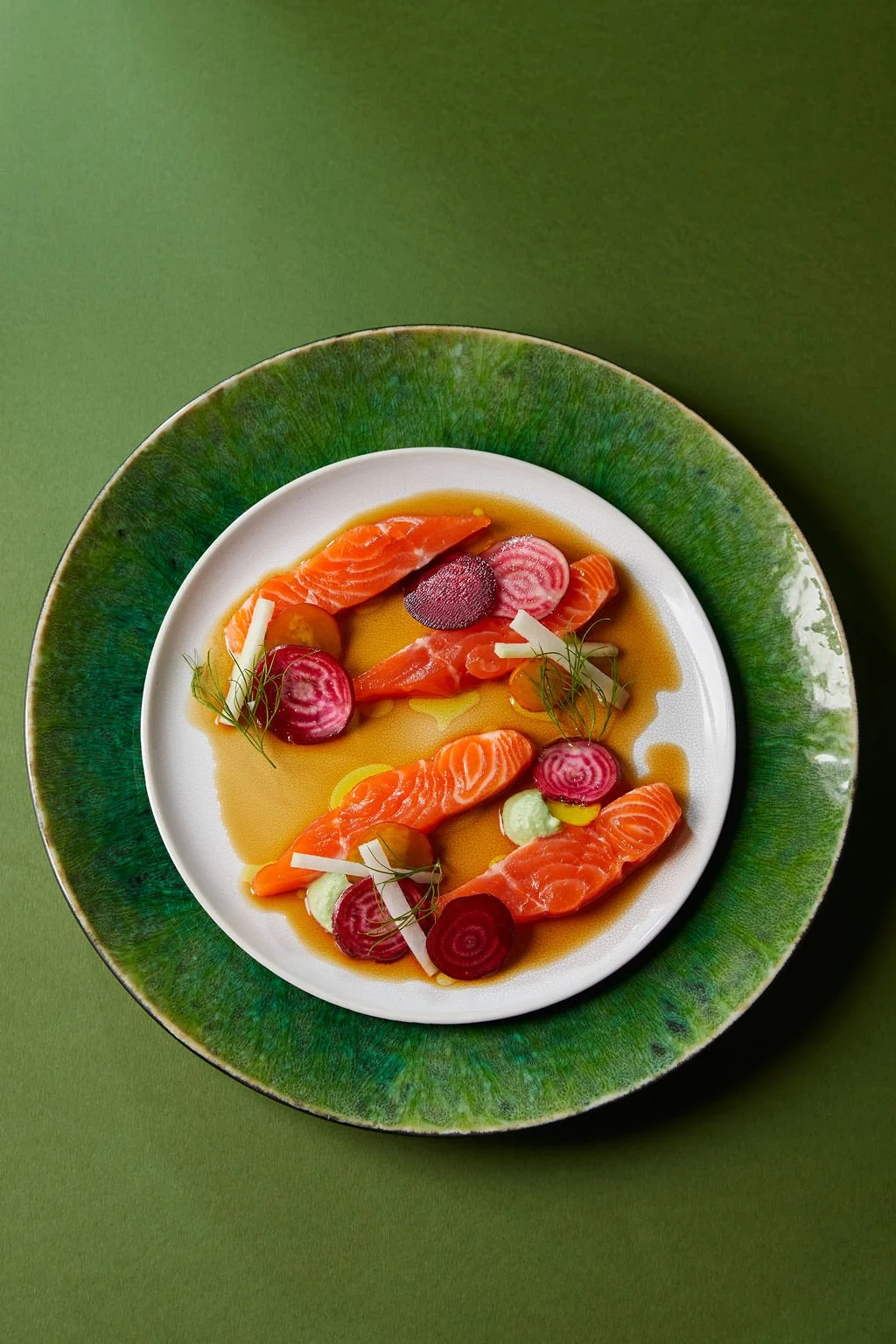 Winter citrus cured trout, heritage beetroot, kohlrabi, wasabi & edamame, ponzu dressing